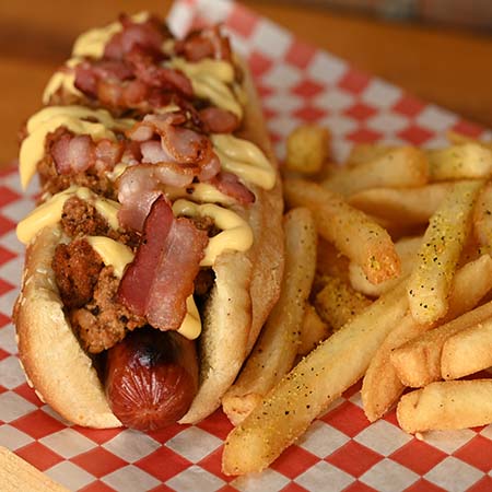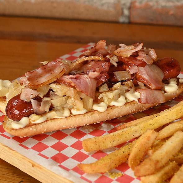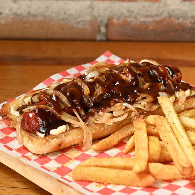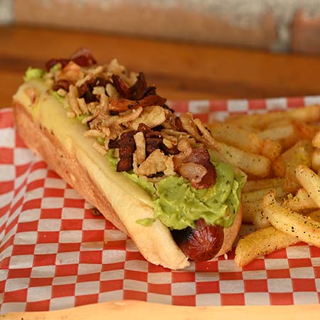 Todas nuestr0s Hot Dogs vienen con papas a la francesa o pide papas curly o gajo por $20 más.
