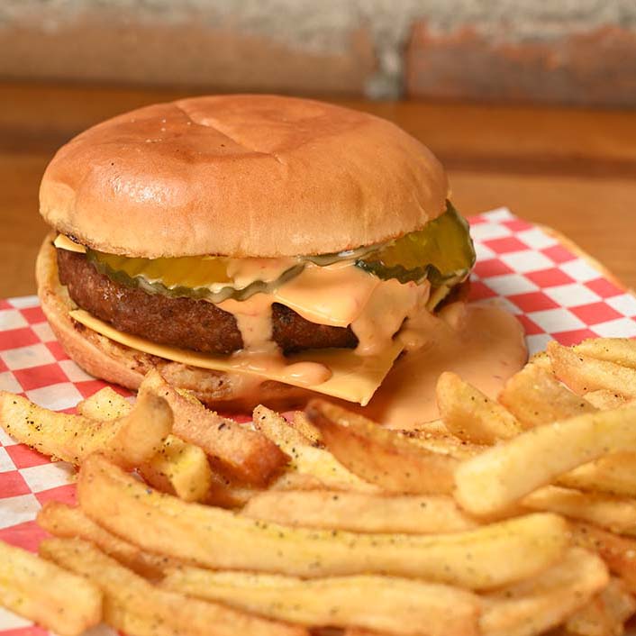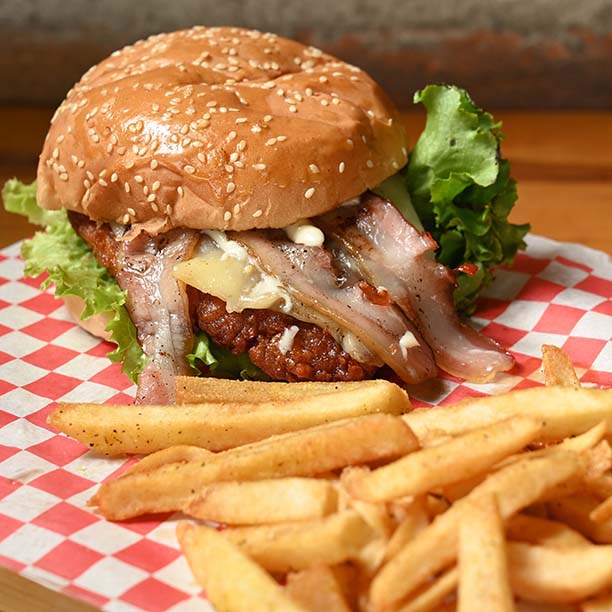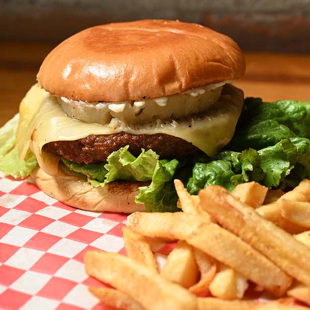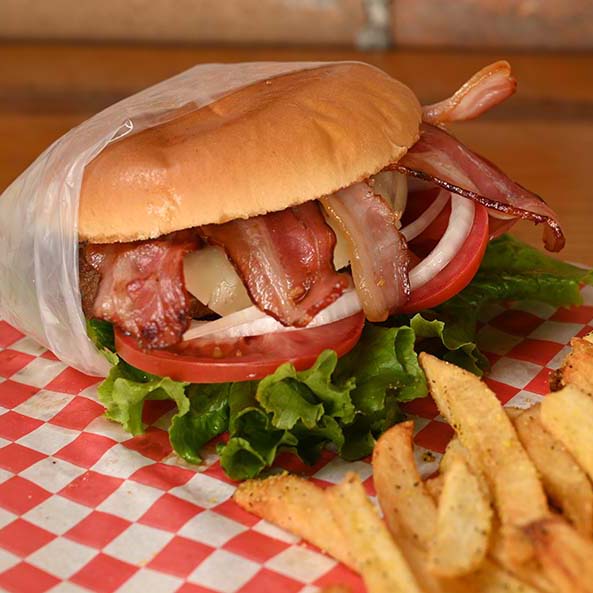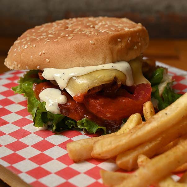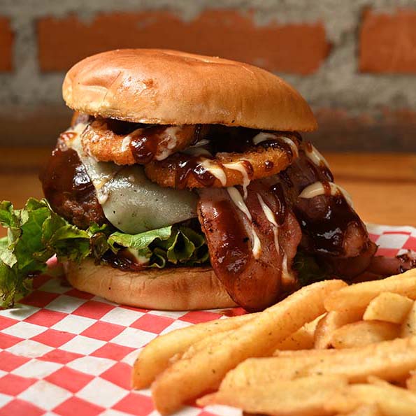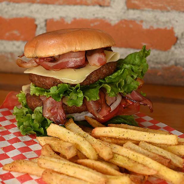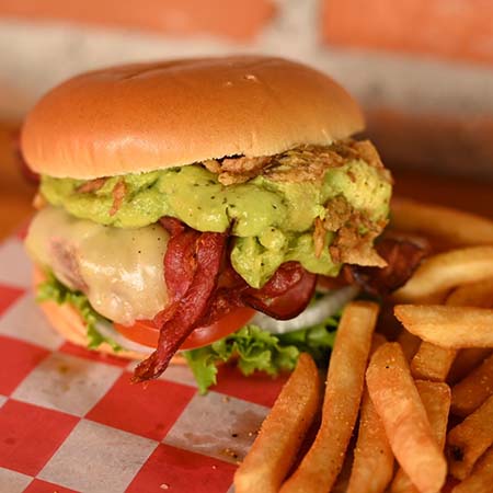 Todas nuestras HAMBURGUESAS vienen con papas a la francesa o pide papas curly o gajo por $20 más.